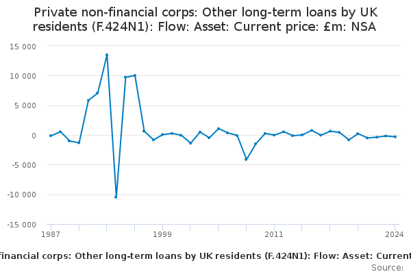 Download this time seriesPrivate non-financial corps: Other long-term loans by UK residents (F.424N1): Flow: Asset: Current price: £m: NSA
