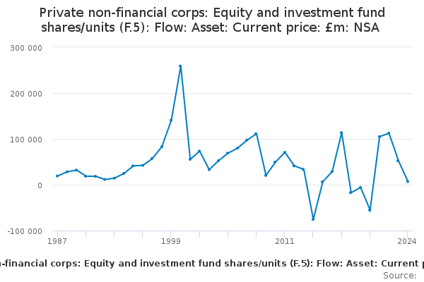 Download this time seriesPrivate non-financial corps: Equity and investment fund shares/units (F.5): Flow: Asset: Current price: £m: NSA