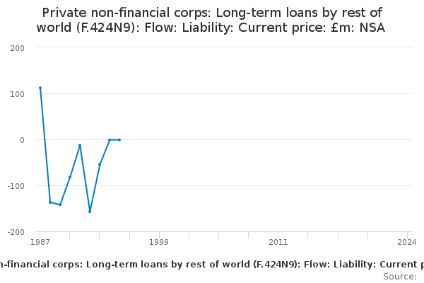 Download this time seriesPrivate non-financial corps: Long-term loans by rest of world (F.424N9): Flow: Liability: Current price: £m: NSA