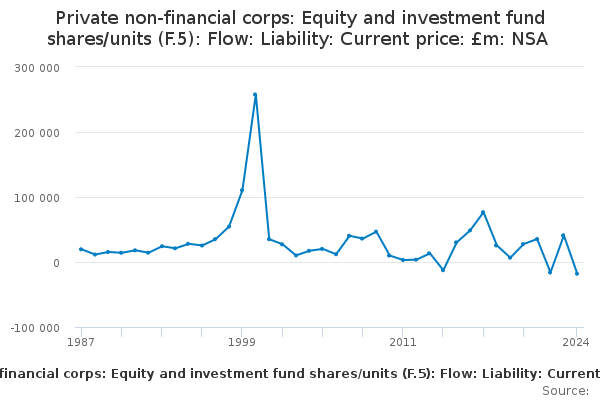 Download this time seriesPrivate non-financial corps: Equity and investment fund shares/units (F.5): Flow: Liability: Current price: £m: NSA