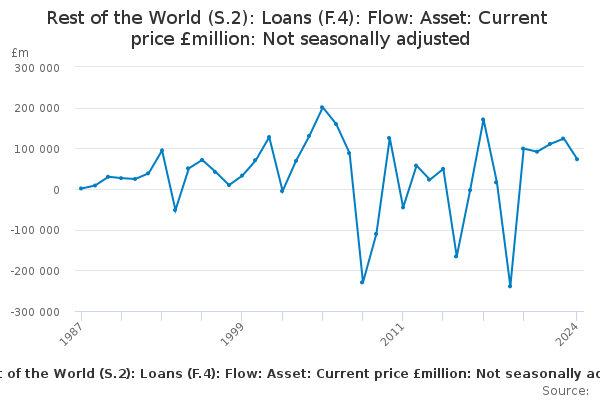 Download this time seriesRest of the World (S.2): Loans (F.4): Flow: Asset: Current price £million: Not seasonally adjusted