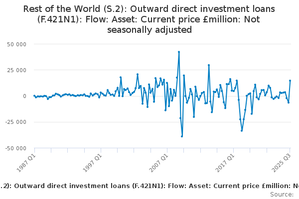Download this time seriesRest of the World (S.2): Outward direct investment loans (F.421N1): Flow: Asset: Current price £million: Not seasonally adjusted