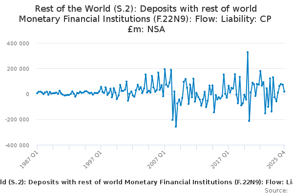 Download this time seriesRest of the World (S.2): Deposits with rest of world Monetary Financial Institutions (F.22N9): Flow: Liability: CP £m: NSA
