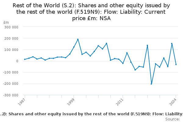 Download this time seriesRest of the World (S.2): Shares and other equity issued by the rest of the world (F.519N9): Flow: Liability: Current price £m: NSA