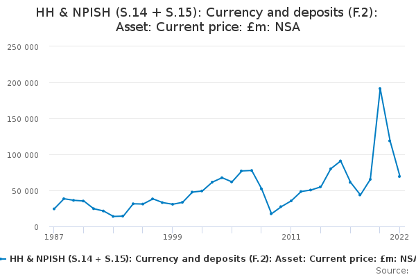 Download this time seriesHH & NPISH (S.14 + S.15): Currency and deposits (F.2): Asset: Current price: £m: NSA