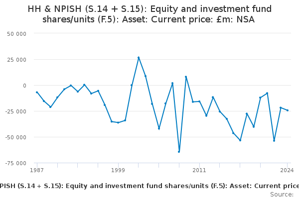 Download this time seriesHH & NPISH (S.14 + S.15): Equity and investment fund shares/units (F.5): Asset: Current price: £m: NSA