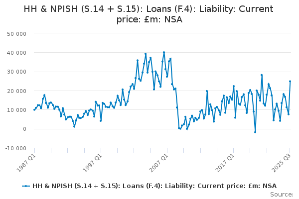 Download this time seriesHH & NPISH (S.14 + S.15): Loans (F.4): Liability: Current price: £m: NSA