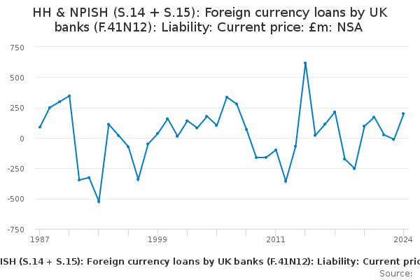Download this time seriesHH & NPISH (S.14 + S.15): Foreign currency loans by UK banks (F.41N12): Liability: Current price: £m: NSA