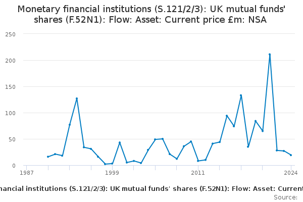 Download this time seriesMonetary financial institutions (S.121/2/3): UK mutual funds' shares (F.52N1): Flow: Asset: Current price £m: NSA