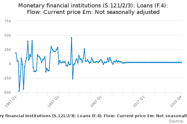 Download this time seriesMonetary financial institutions (S.121/2/3): Loans (F.4): Flow: Current price £m: Not seasonally adjusted