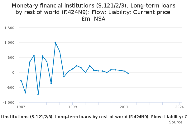 Download this time seriesMonetary financial institutions (S.121/2/3): Long-term loans by rest of world (F.424N9): Flow: Liability: Current price £m: NSA