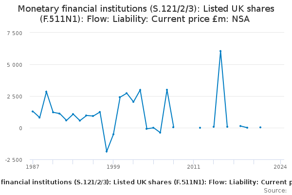 Download this time seriesMonetary financial institutions (S.121/2/3): Listed UK shares (F.511N1): Flow: Liability: Current price £m: NSA