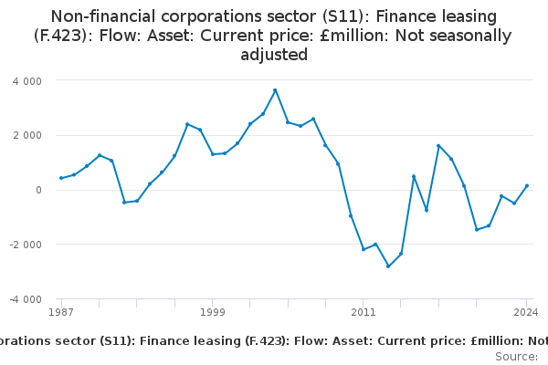 Download this time seriesNon-financial corporations sector (S11): Finance leasing (F.423): Flow: Asset: Current price: £million: Not seasonally adjusted