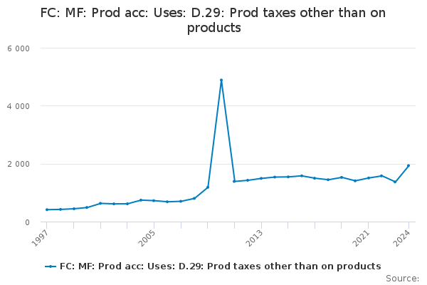 Download this time seriesFC: MF: Prod acc: Uses: D.29: Prod taxes other than on products