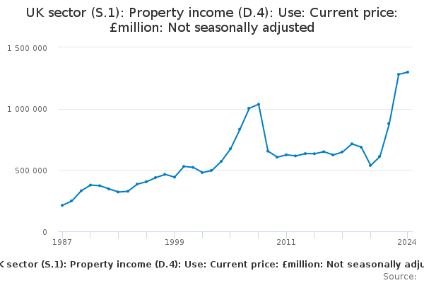 Download this time seriesUK sector (S.1): Property income (D.4): Use: Current price: £million: Not seasonally adjusted