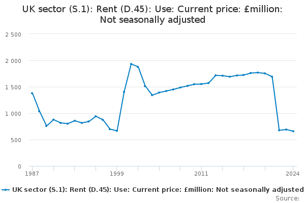 Download this time seriesUK sector (S.1): Rent (D.45): Use: Current price: £million: Not seasonally adjusted