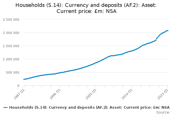 Download this time seriesHouseholds (S.14): Currency and deposits (AF.2): Asset: Current price: £m: NSA