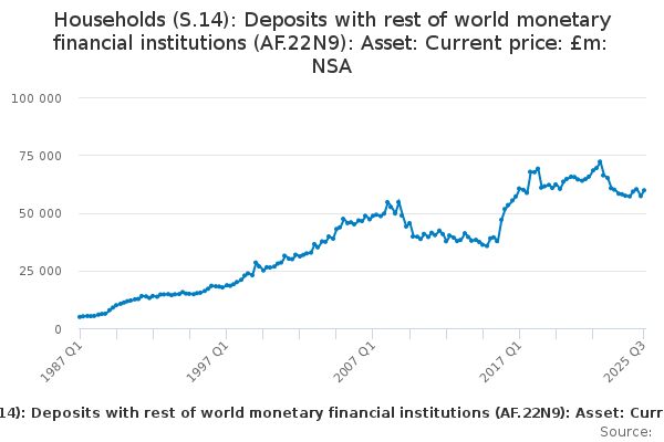 Download this time seriesHouseholds (S.14): Deposits with rest of world monetary financial institutions (AF.22N9): Asset: Current price: £m: NSA