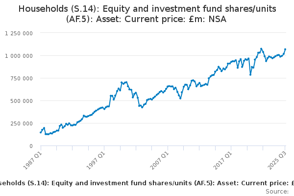 Download this time seriesHouseholds (S.14): Equity and investment fund shares/units (AF.5): Asset: Current price: £m: NSA