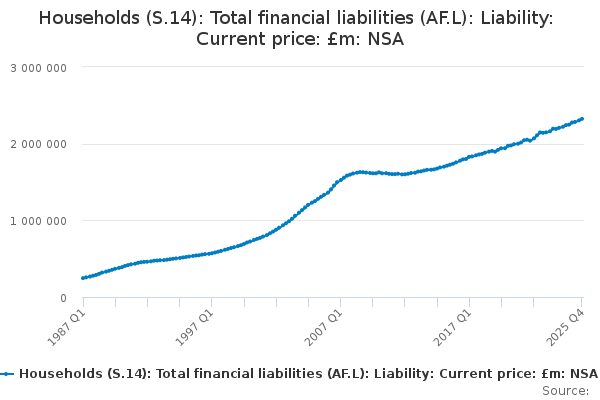 Download this time seriesHouseholds (S.14): Total financial liabilities (AF.L): Liability: Current price: £m: NSA