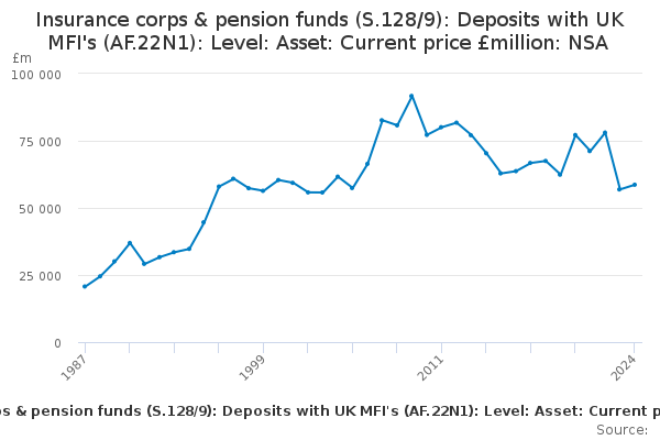 Download this time seriesInsurance corps & pension funds (S.128/9): Deposits with UK MFI's (AF.22N1): Level: Asset: Current price £million: NSA