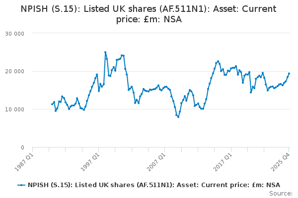 Download this time seriesNPISH (S.15): Listed UK shares (AF.511N1): Asset: Current price: £m: NSA