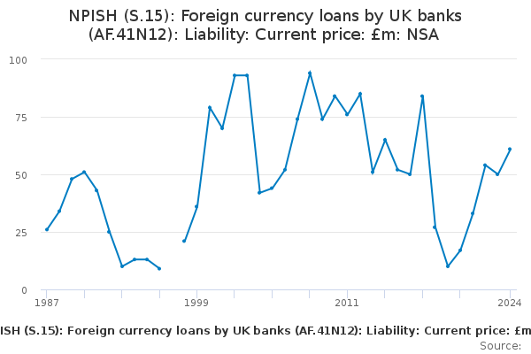 Download this time seriesNPISH (S.15): Foreign currency loans by UK banks (AF.41N12): Liability: Current price: £m: NSA