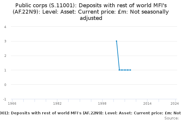 Download this time seriesPublic corps (S.11001): Deposits with rest of world MFI's (AF.22N9): Level: Asset: Current price: £m: Not seasonally adjusted