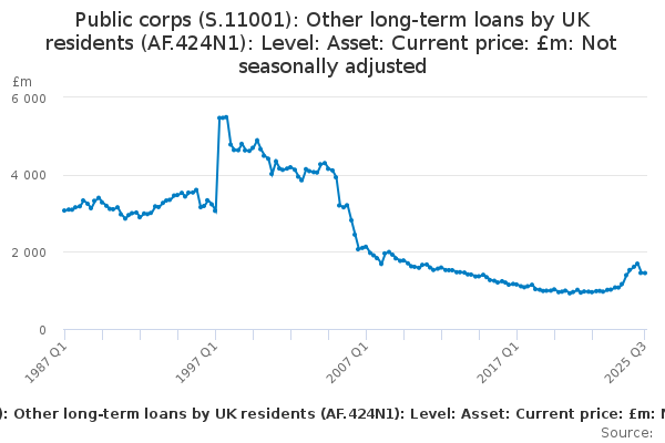 Download this time seriesPublic corps (S.11001): Other long-term loans by UK residents (AF.424N1): Level: Asset: Current price: £m: Not seasonally adjusted