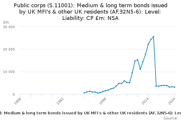 Download this time seriesPublic corps (S.11001): Medium & long term bonds issued by UK MFI's & other UK residents (AF.32N5-6): Level: Liability: CP £m: NSA