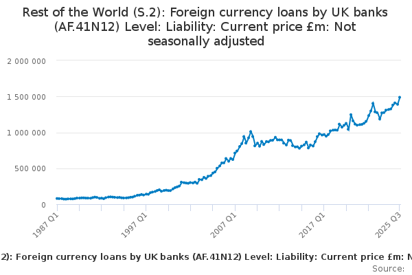 Download this time seriesRest of the World (S.2): Foreign currency loans by UK banks (AF.41N12) Level: Liability: Current price £m: Not seasonally adjusted
