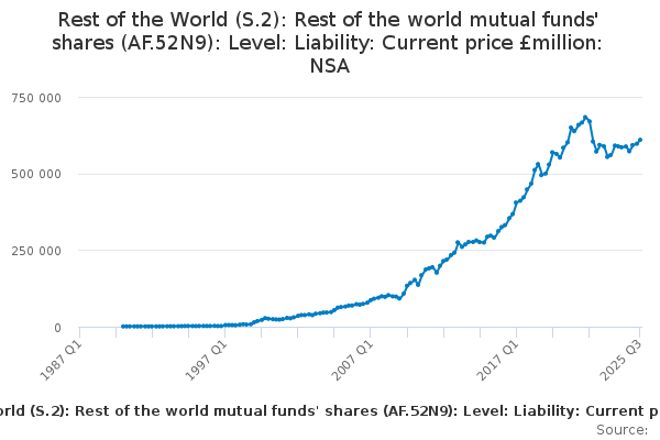 Download this time seriesRest of the World (S.2): Rest of the world mutual funds' shares (AF.52N9): Level: Liability: Current price £million: NSA