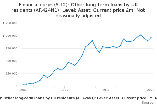 Download this time seriesFinancial corps (S.12): Other long-term loans by UK residents (AF.424N1): Level: Asset: Current price £m: Not seasonally adjusted