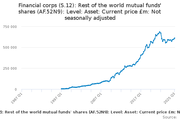 Download this time seriesFinancial corps (S.12): Rest of the world mutual funds' shares (AF.52N9): Level: Asset: Current price £m: Not seasonally adjusted