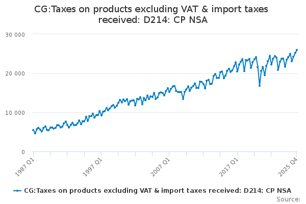 Download this time seriesCG:Taxes on products excluding VAT & import taxes received: D214: CP NSA