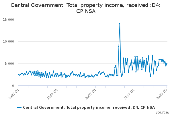 Download this time seriesCentral Government: Total property income, received :D4: CP NSA