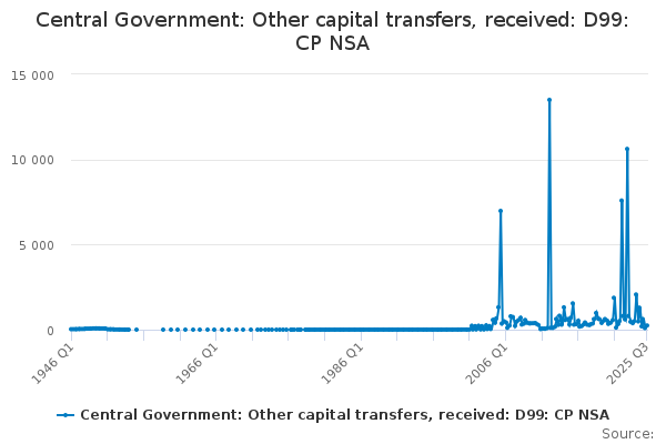 Download this time seriesCentral Government: Other capital transfers, received: D99: CP NSA