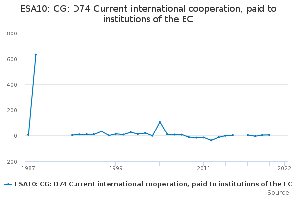 Download this time seriesESA10: CG: D74 Current international cooperation, paid to institutions of the EC