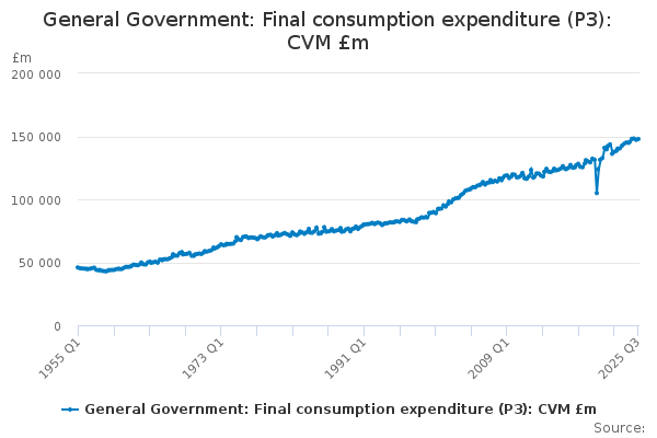 Download this time seriesGeneral Government: Final consumption expenditure (P3): CVM £m