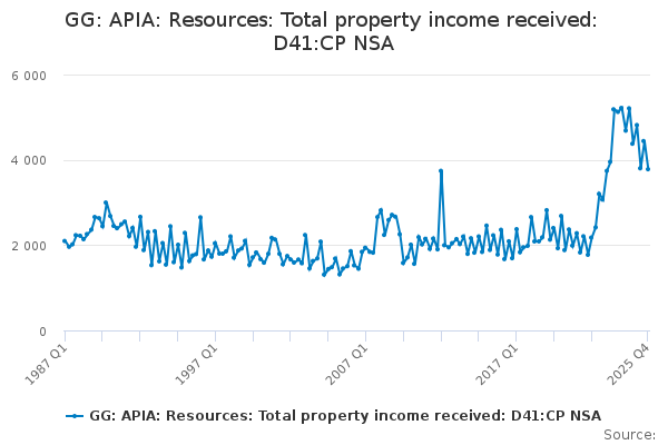 Download this time seriesGG: APIA: Resources: Total property income received: D41:CP NSA