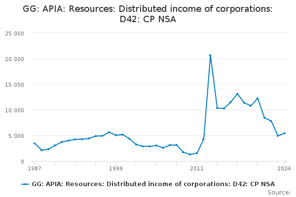 Download this time seriesGG: APIA: Resources: Distributed income of corporations: D42: CP NSA