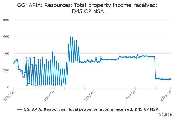 Download this time seriesGG: APIA: Resources: Total property income received: D45:CP NSA