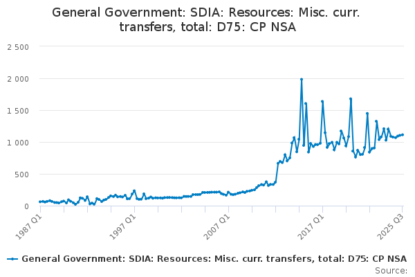 Download this time seriesGeneral Government: SDIA: Resources: Misc. curr. transfers, total: D75: CP NSA