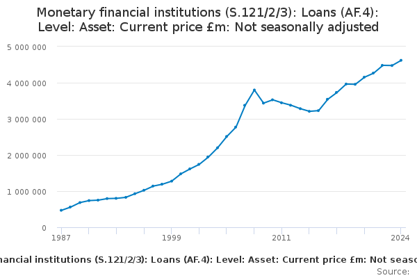 Download this time seriesMonetary financial institutions (S.121/2/3): Loans (AF.4): Level: Asset: Current price £m: Not seasonally adjusted
