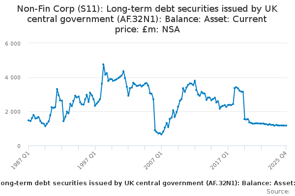 Download this time seriesNon-Fin Corp (S11): Long-term debt securities issued by UK central government (AF.32N1): Balance: Asset: Current price: £m: NSA