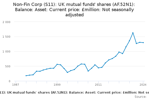 Download this time seriesNon-Fin Corp (S11): UK mutual funds' shares (AF.52N1): Balance: Asset: Current price: £million: Not seasonally adjusted