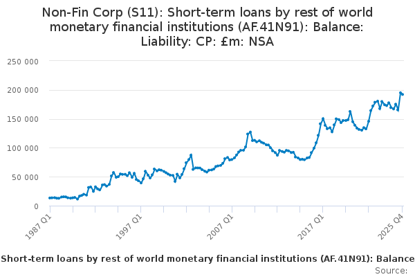 Download this time seriesNon-Fin Corp (S11): Short-term loans by rest of world monetary financial institutions (AF.41N91): Balance: Liability: CP: £m: NSA