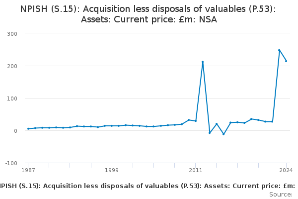 Download this time seriesNPISH (S.15): Acquisition less disposals of valuables (P.53): Assets: Current price: £m: NSA
