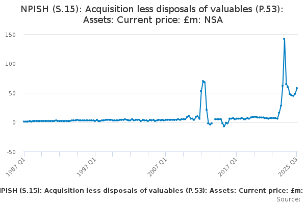 Download this time seriesNPISH (S.15): Acquisition less disposals of valuables (P.53): Assets: Current price: £m: NSA