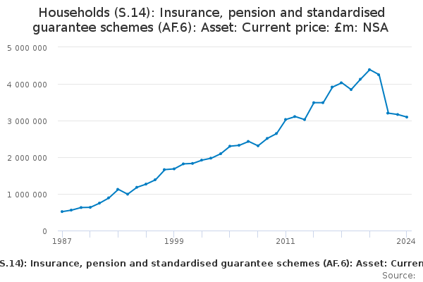Download this time seriesHouseholds (S.14): Insurance, pension and standardised guarantee schemes (AF.6): Asset: Current price: £m: NSA